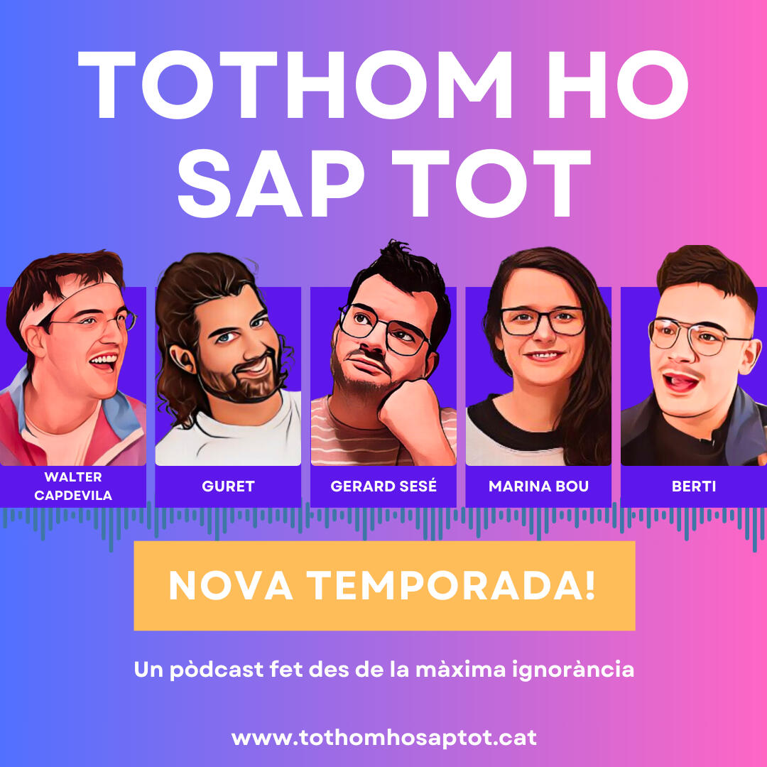Fem un pòdcast sense subvencions, ni ajudes, ni publicitat… només amb les nostres ganes i il·lusió (som així de beneits).‘Tothom ho sap tot‘ és humor en estat pur, amb actualitat o sense, amb debat, amb xerinola i en vídeo i en àudio! I tot fet des de la màxima ignorància. Què més voleu?Dos dilluns al mes!Amb: Gerard Sesé, Marina Bou, Walter Capdevila, Berti i en Guret!